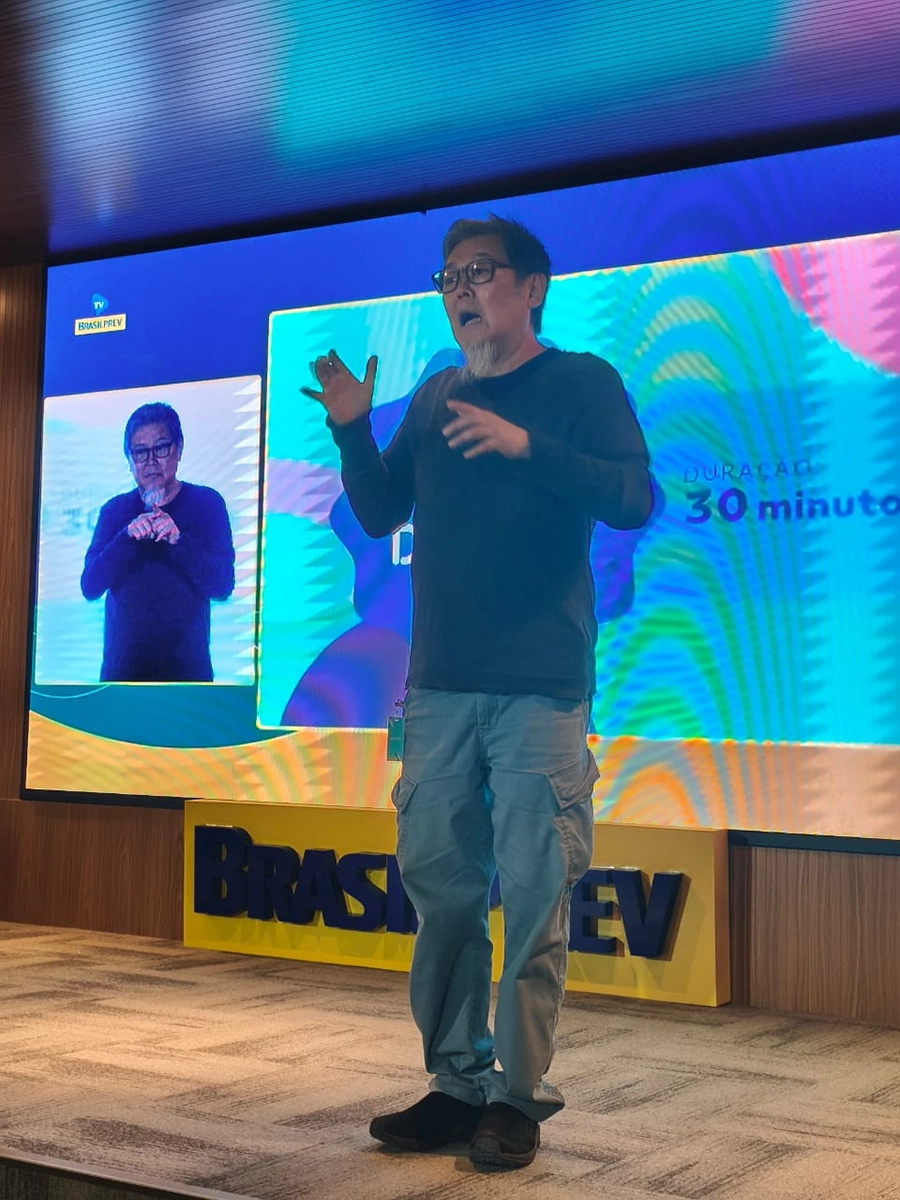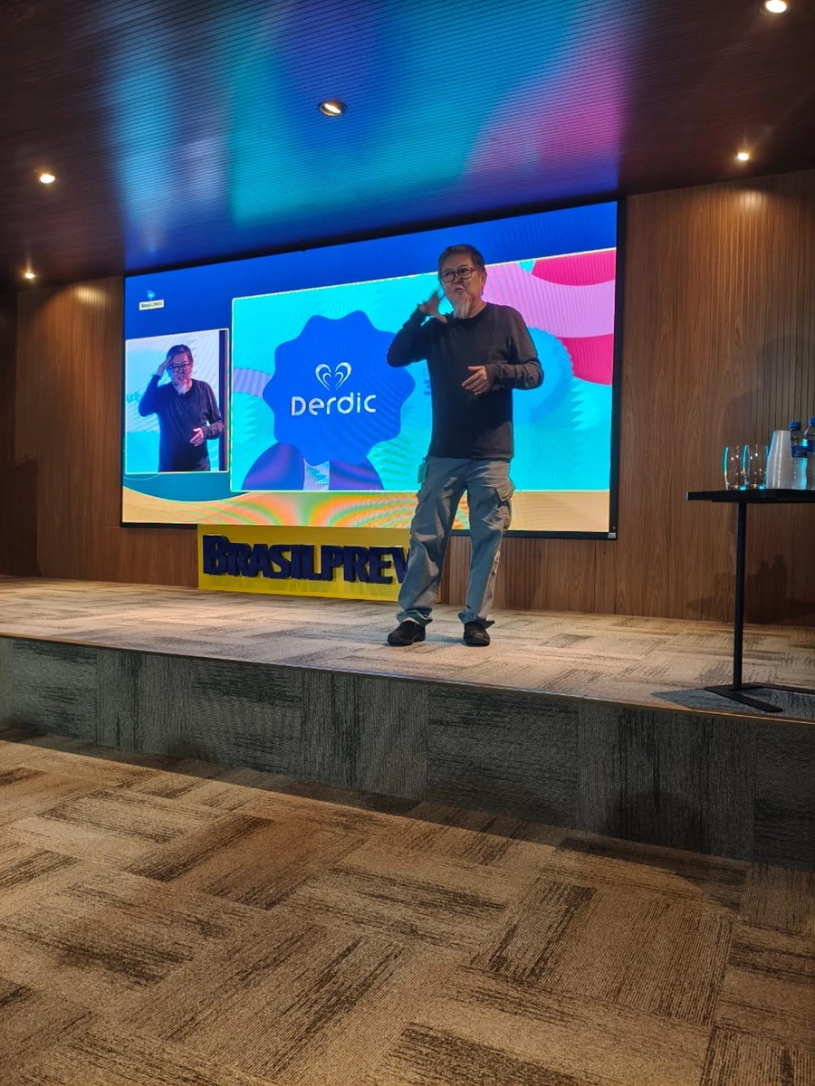 No dia 16/9, os professores da Derdic Ricardo Nakasato (docente surdo de Libras) e Maria Inês Vieira (docente de teoria de Libras), participaram de uma sensibilização na Brasilprev sobre o mundo da pessoa surda.